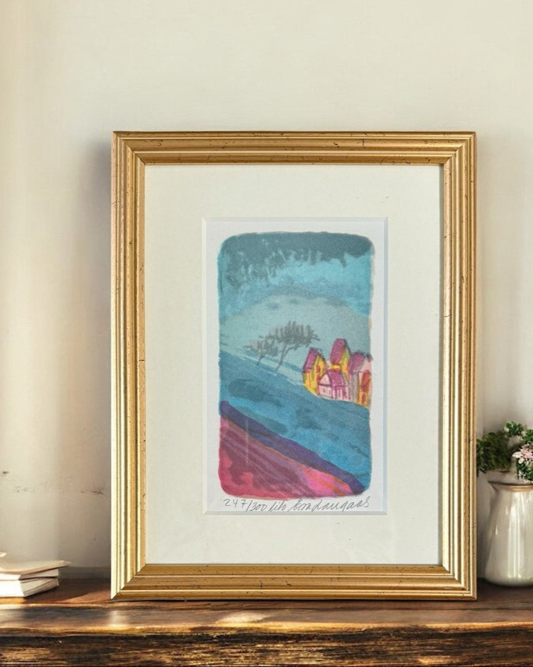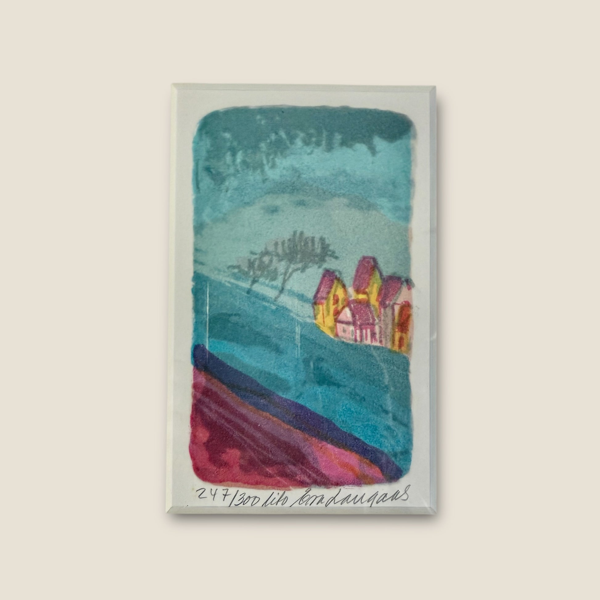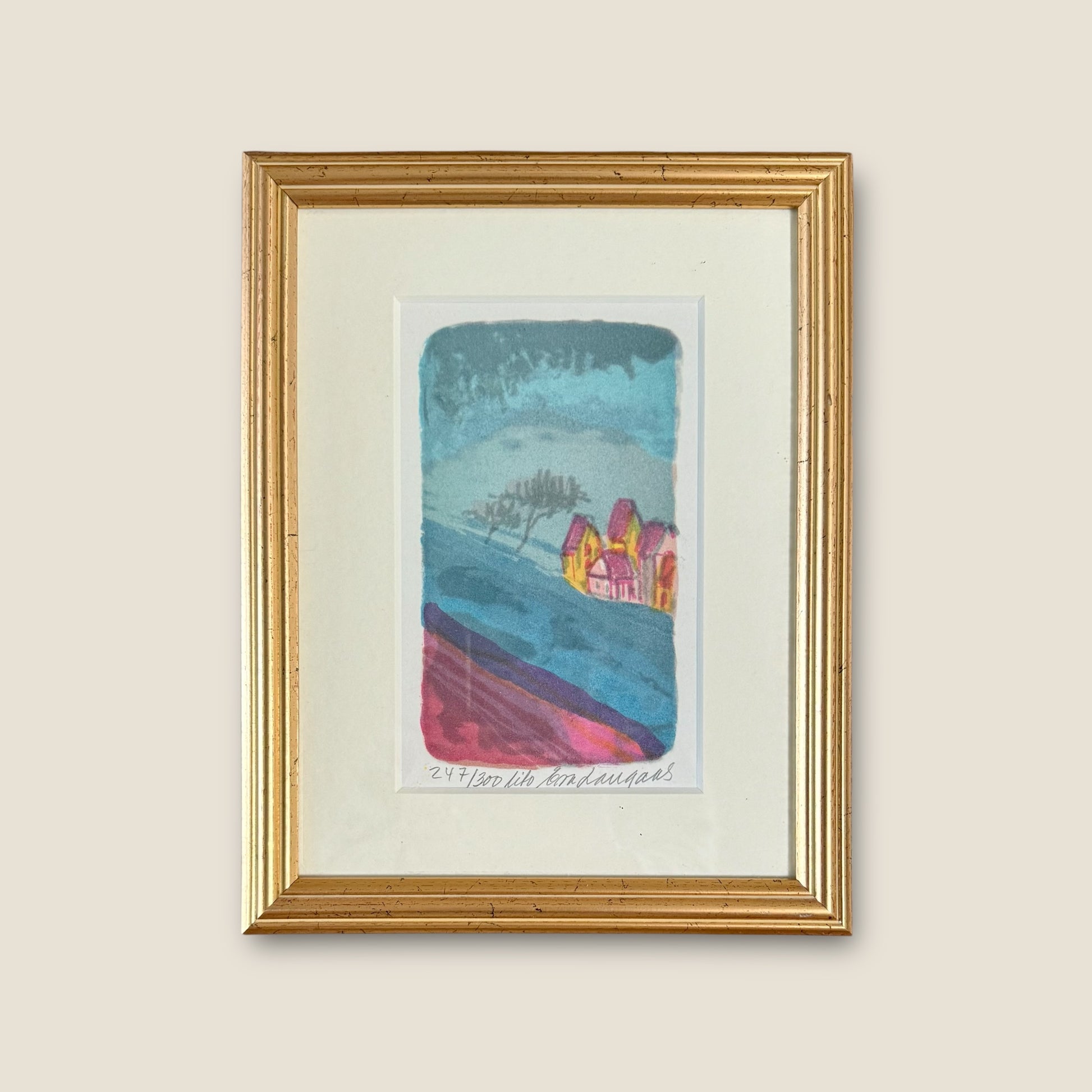 Norwegian artist Eva Langaas combines vivid hues with a fusion of classic and contemporary methods. This original lithograph, sourced directly from Oslo, is a limited edition piece titled "Lito." Each print is numbered and signed, making it a unique addition to any art collection.